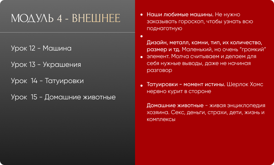 Мы изучим на ярких примерах (фото других людей) как это работает. Можно принести фотографии знакомых, о которых хочется узнать больше информации